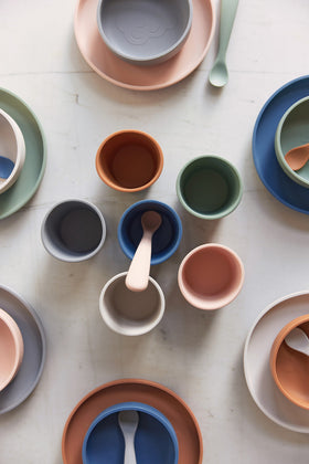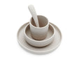 Das gesamte Kindergeschirr-Set besteht aus Teller, Tasse, Schälchen und Löffel und besteht zu 100 % aus Silikon. 100% frei von BPA, PVC und PHTHALATEN.