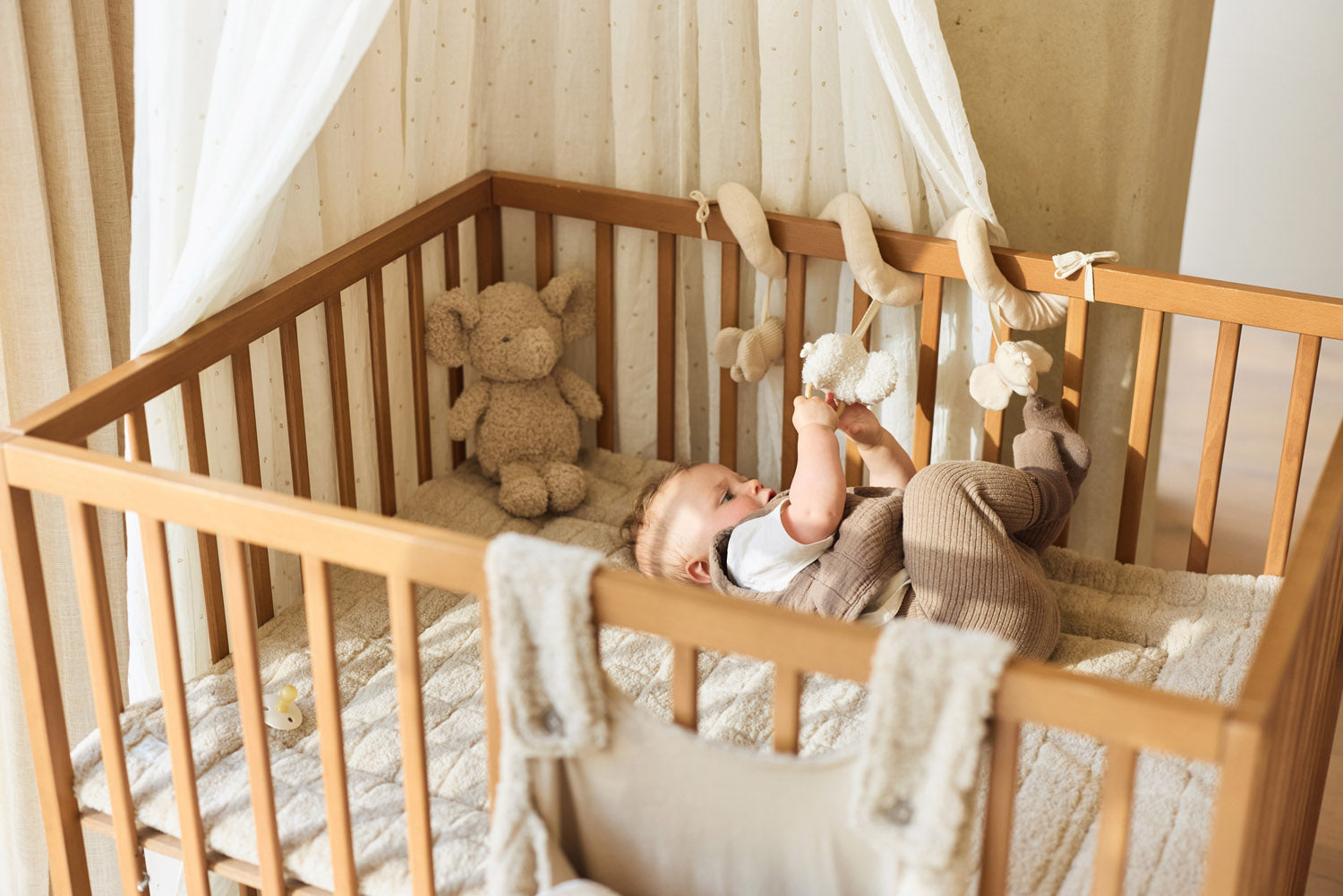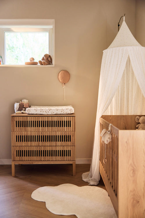 Dieses Moskitonetz in der Farbe Ivory mit hübschen Milky Coffee-Blättern schafft eine ruhige, gemütliche Atmosphäre im Babyzimmer. Der Crinkle-Effekt verleiht ihm einen verspielten Look. Perfekt zum Leafy Dreams-Thema – lässt sich aber auch wunderbar mit anderen Themen kombinieren. Hänge es über das Bettchen oder Kinderbett und schaffe im Handumdrehen Gemütlichkeit.