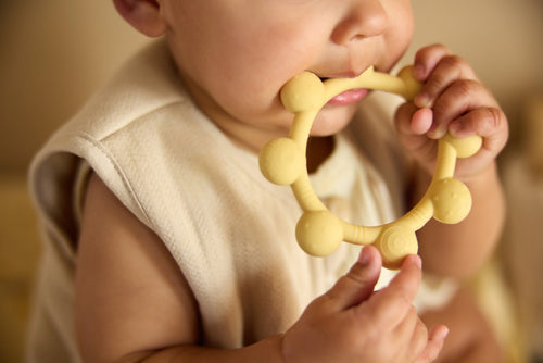 Dieser Silikon-Beißring in Sonnenform ist ideal in der Zahnungsphase. Leicht zu greifen, mit verschiedenen Strukturen, die das Zahnfleisch beruhigen. Hergestellt aus 100 % BPA-freiem Silikon, sicher zum Kauen. Praktisch und verspielt – ein Must-have in den ersten Monaten!