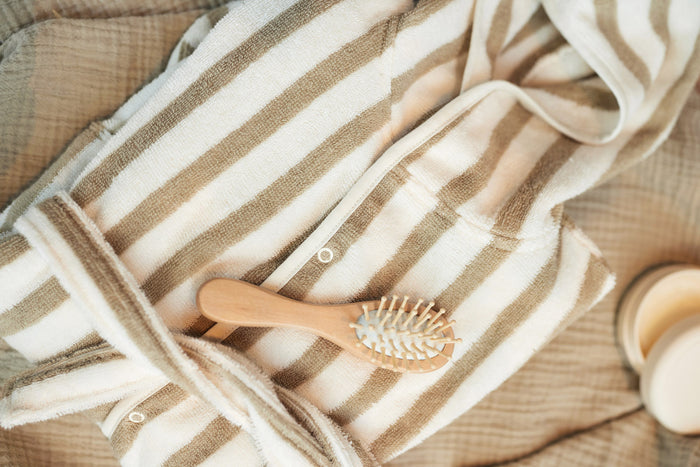 Bademantel 3-4 Jahre Stripe Frottee - Sea Green - GOTS
