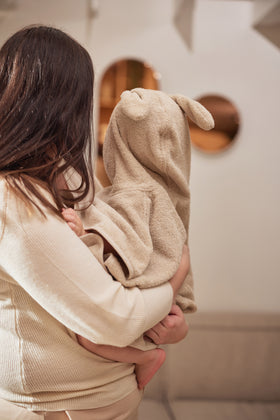 Das weiche Frottee schont die zarte Babyhaut und nimmt Feuchtigkeit gut auf, sodass das Abtrocknen im Handumdrehen erledigt ist. Nach Gebrauch kannst du das Kapuzenhandtuch einfach an der Schlaufe aufhängen.