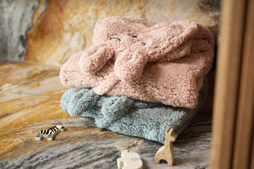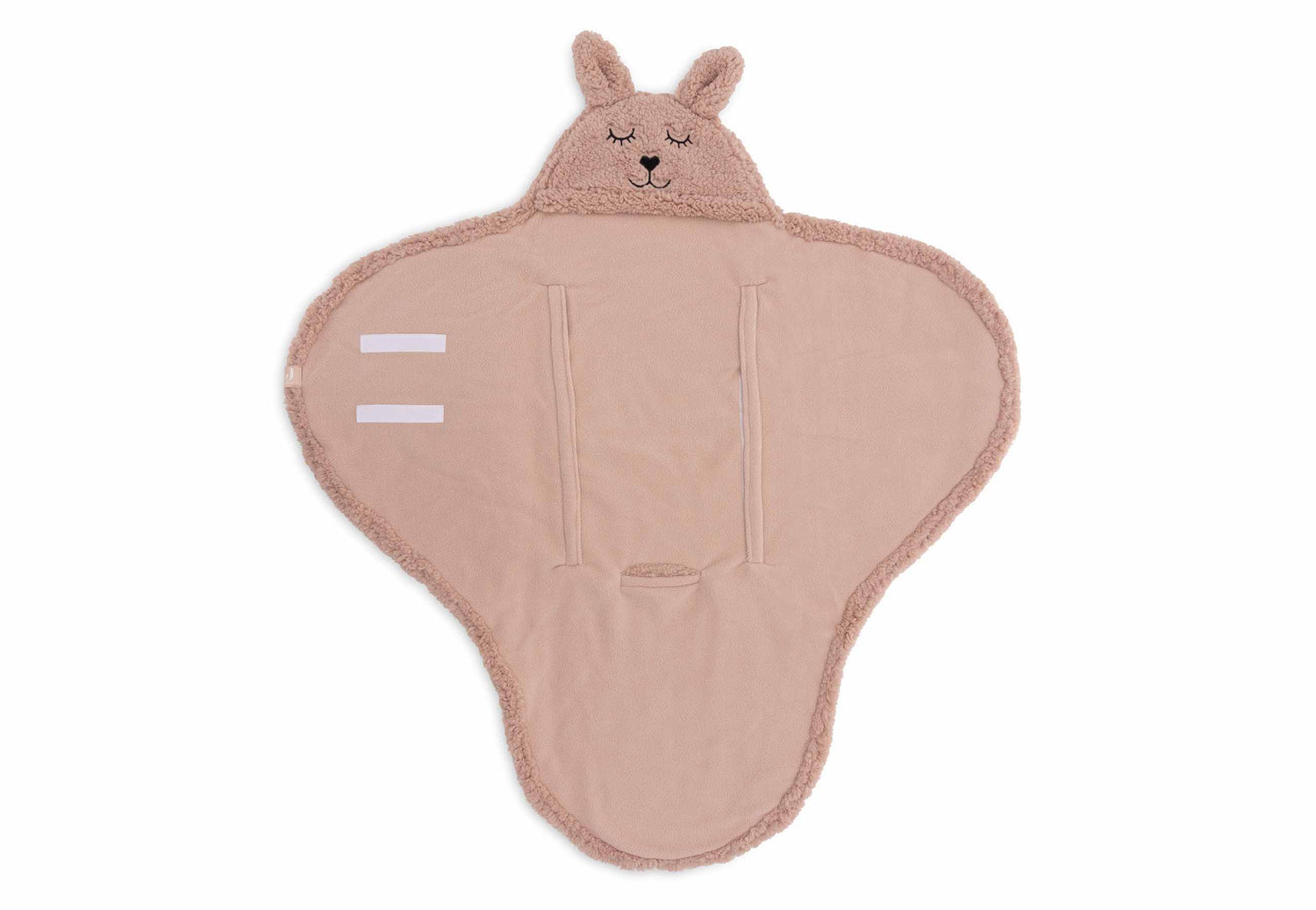 Einschlagdecke mit megahohem Niedlichkeitsfaktor. Der Stoff an der Außenseite ist aus flauschigem Kunstfell und innen ist er wunderbar weich. Wickle dein Baby in diese Einschlagdecke und schließe die Decke mit den praktischen Klettbändern. Setze deinem Baby das Mützchen auf und schon siehst du die süßen Ohren und das Häschengesicht auf der Mütze. Total süß! Diese Einschlagdecke kann direkt nach der Geburt verwendet werden. Und sie ist auch sehr praktisch im Kindersitz. Entscheidest du dich für die Farbe Wild Rose oder Sea Green?