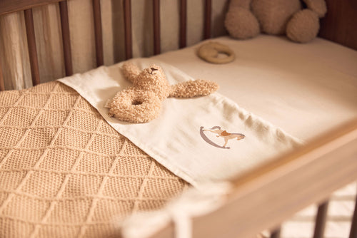 Mit dieser niedlichen Häschenrassel wird dein Baby stundenlang Spaß haben. Dieses wunderbar kuschelige Item aus weichem, Biscuit-farbenem Bouclé-Stoff hat eine süße, herzförmig bestickte Nase. Diese Rassel macht ein Geräusch, wenn man sie schüttelt. Das ist das süßeste Häschen auf der Welt, oder?