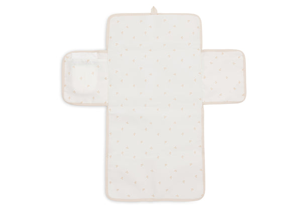 Unsere trendige Wickelunterlage in Twill Leinenoptik ist der perfekte Begleiter für geschäftige Eltern unterwegs! Diese Unterlage hat praktische Taschen, sodass du Mullwindeln und normale Windeln gut verstauen kannst, damit du beim Wechseln alles zur Hand hast. Die Außenseite der Unterlage ist aus stilvollem Twill in Leinenoptik gefertigt, die abwaschbare Innenseite ist mit einem niedlichen Harvest Print verziert. Beide strahlen in natürlichen Farben und sorgen für eine ruhige und stilvolle Ausstrahlung. Mit unserer praktischen und schicken Wickelunterlage mit Fächern kannst du deinem Baby bequem und stilvoll die Windeln wechseln, wo immer du auch bist.