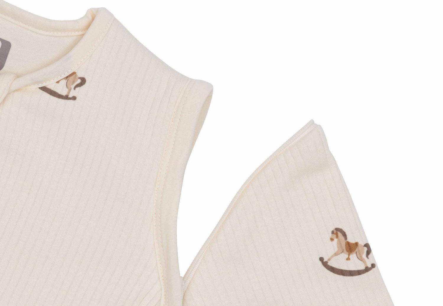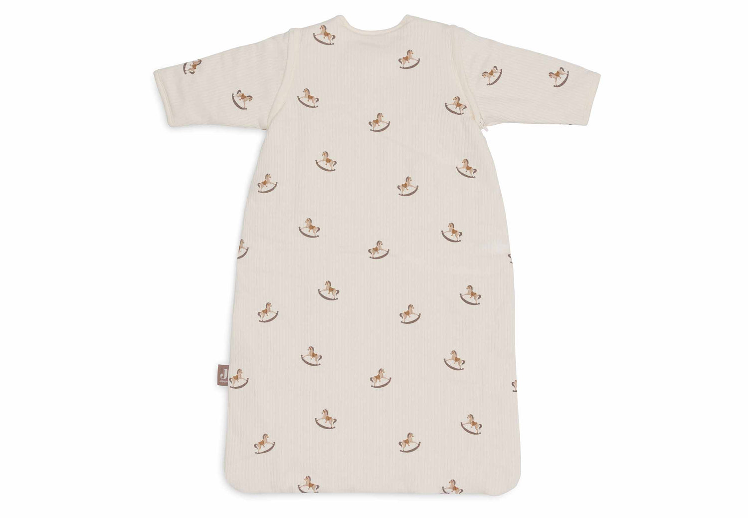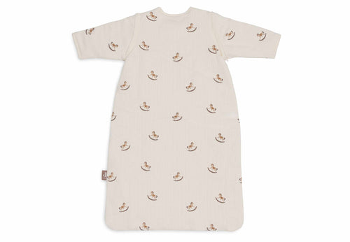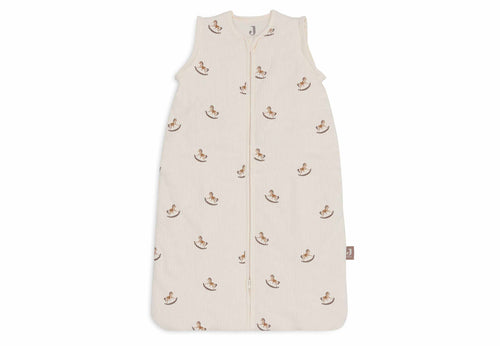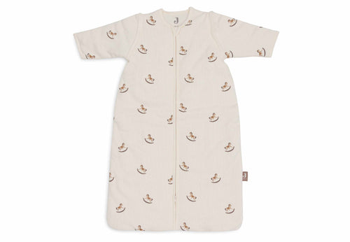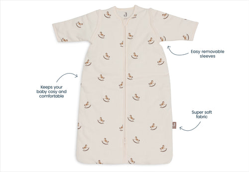 Looking for the ultimate sleeping experience for your little one? All our sleeping bags are made of wonderfully soft and breathable material and feature the trendiest prints, specially designed by our design team, so your little one can always sleep in style, whatever the season. All sleeping bags also feature a secure and comfortable zipper to make putting on and taking off as easy as possible. So from newborn minis to naughty toddlers and from balmy summers to cold winters, we'll make sure your child sleeps well! This wonderful baby sleeping bad has detachable sleeves. This is how you transform it from a TOG value of 3.5 for cold winter days to a TOG value of 2.5 for chilly nights in spring and autumn. Buy this sleeping bag in different colours and in 70, 90 and 110 cm! So you're guaranteed to find the perfect fit for your little one. Is the sleeping bag not yet warm enough? You can combine this sleeping bag with one of the lovely blankets from Jollein.