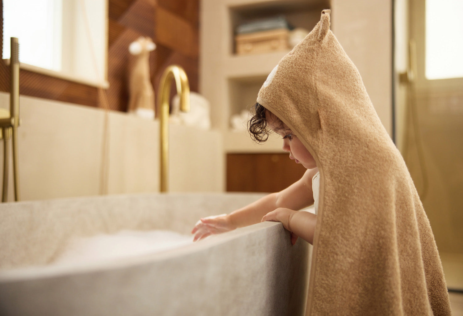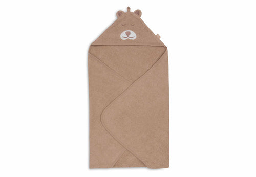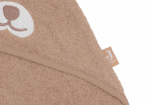 This bath cape is ideal after bathing or swimming. Completely in style in the colour Moonstone, you can wrap your baby up and keep them warm as soon as you take them out of the water. The hood covers the head so no heat is lost. Comfy! With its sweet ears and mischievous eyes, this cheetah is really adorable! The soft terry is gentle on baby's delicate skin and absorbs moisture well, making drying off a snap. The inside is made of soft terry. After use, easily hang the cape on the loop. You can iron this product but better that you don't. Uncoated fabric absorbs more moisture in a better way.