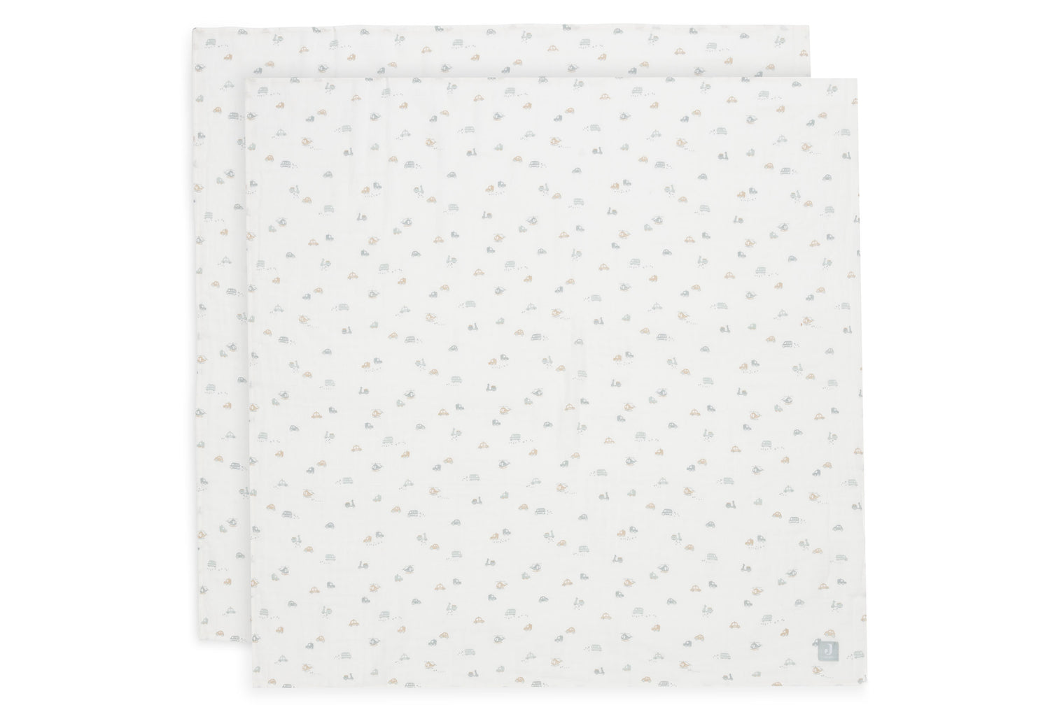 Muslin cloths are indispensable for every parent! Whether you use them as towels, burb cloths, underpads or blankets On The Go - the possibilities are endless. These cute cloths, in an On The Go theme, are wonderfully soft and perfect for sensitive baby skin. This 2 pack has a fun all-over print full of cars, scooters and helicopters in Sea Green and Biscuit colours!