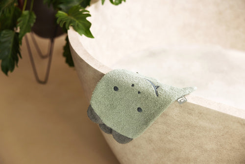 This washcloth is perfect for daily use. It is wonderfully soft and gentle on your baby's vulnerable skin, nice and long so that it stays in place on your hand and available in a cheetah variant with a Caramel colour and a crocodile variant in the colour Ash Green. In addition, the washcloth has cute ears at the top and a practical loop to hang the washcloth. You use the terry washcloth every day when washing your mini, but it is also very practical to take with you when you go out together. A messy face will be clean again in no time with this terry washcloth!