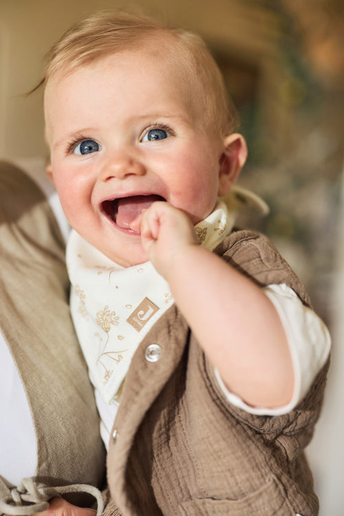 These bandana bibs from the Leafy Dreams collection are perfect for your little one! The set includes two bibs with a natural look and subtle print reflecting the adventurous theme. The snap closure keeps them in place while the soft fabric protects delicate skin. They absorb well – ideal for drooly little ones!