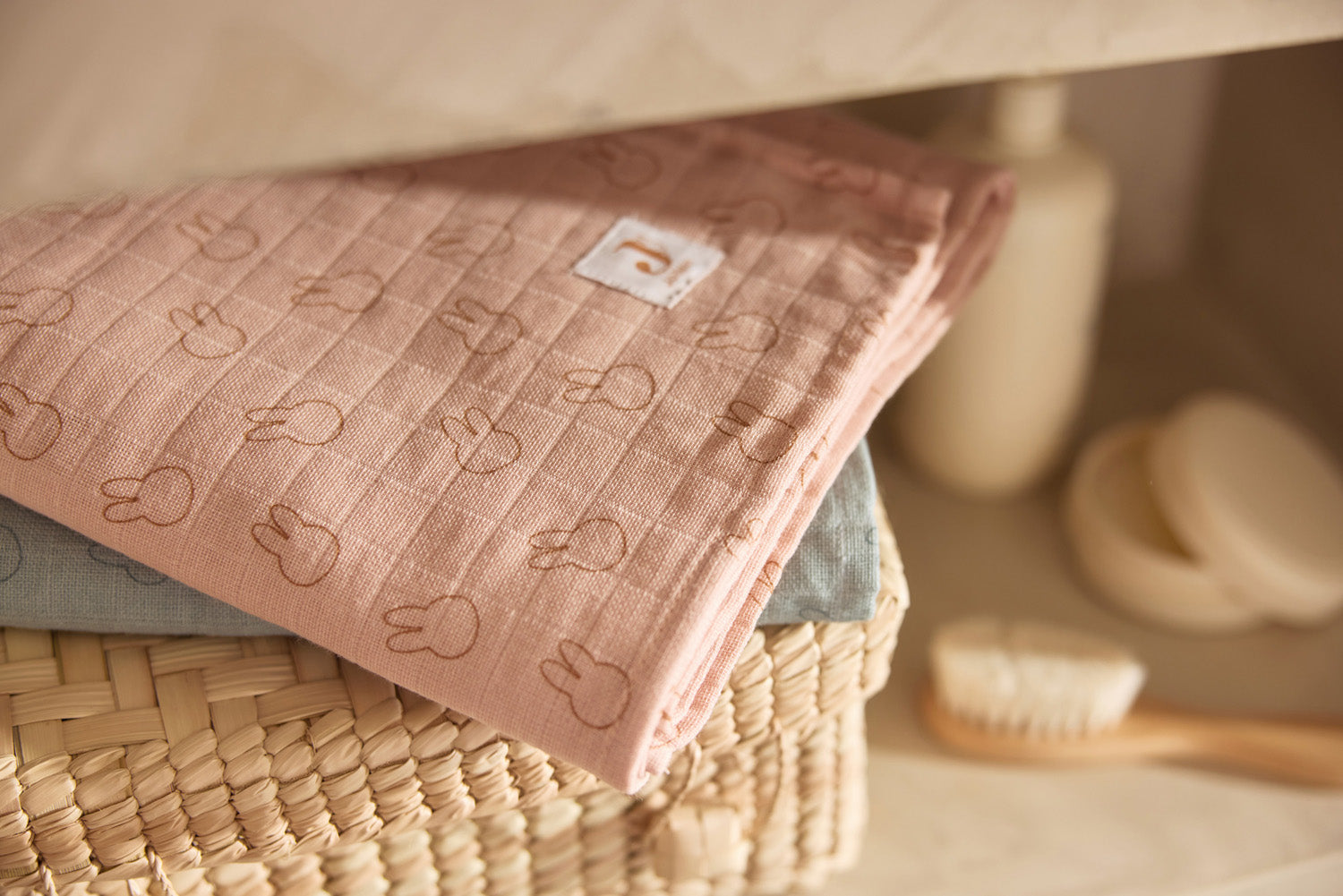 You can never have enough cloths, you can use them for everything and wash them again. This muslin cloth with Miffy Silhouettes print has the colour Wild Rose and is perfect for creating a lovely atmosphere in the nursery. The silhouettes in the shape of Miffy make these muslin cloths cute sweet. Because you can score these cloths in packs of 3, you always have one that’s both clean and dry.