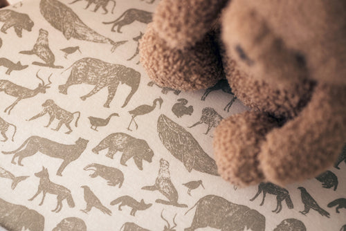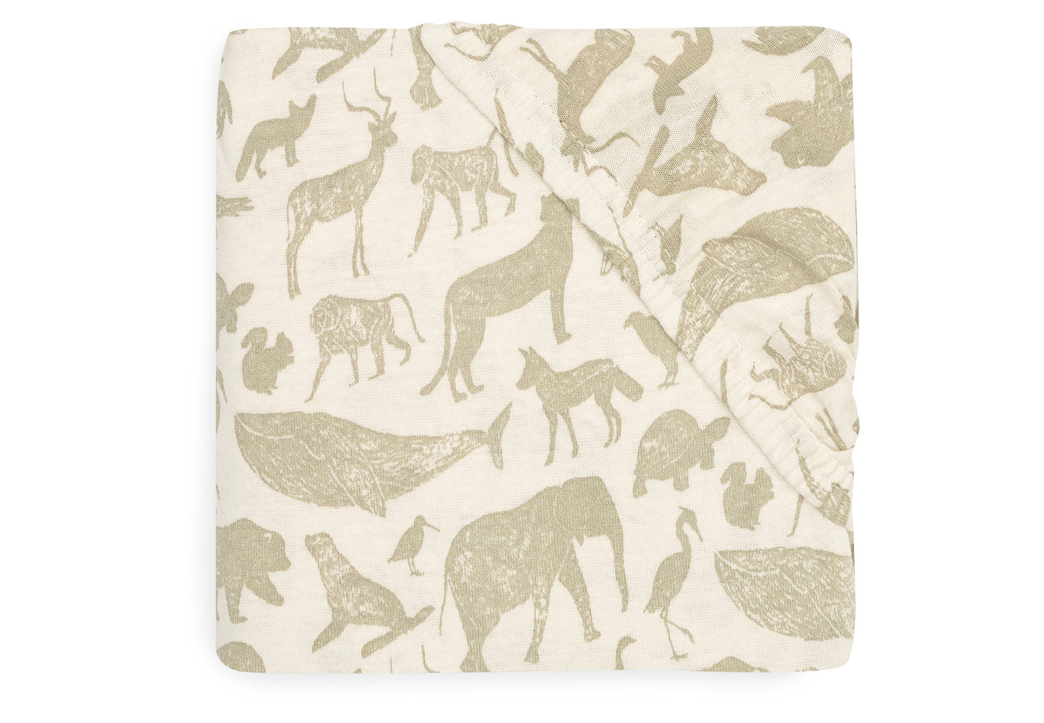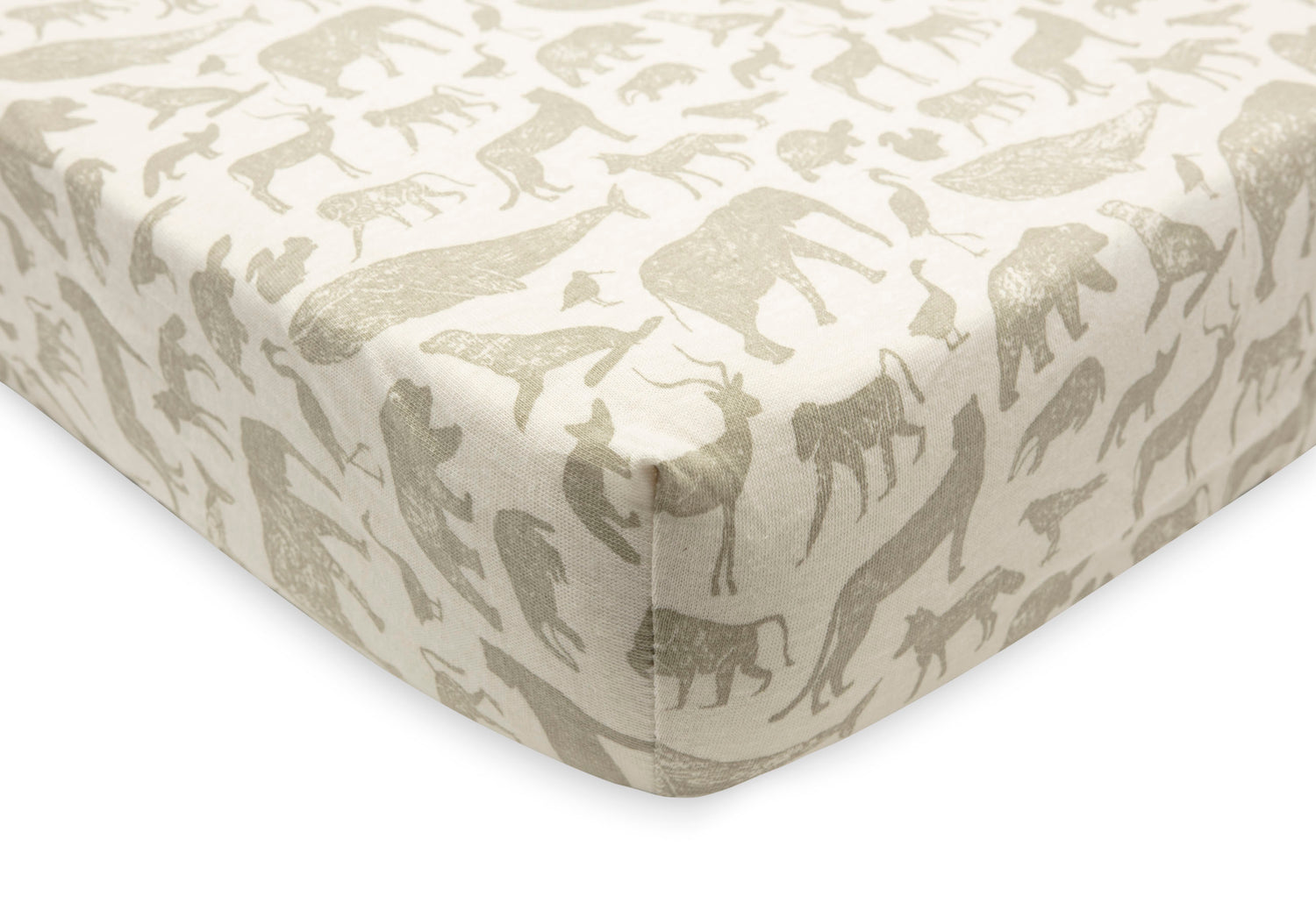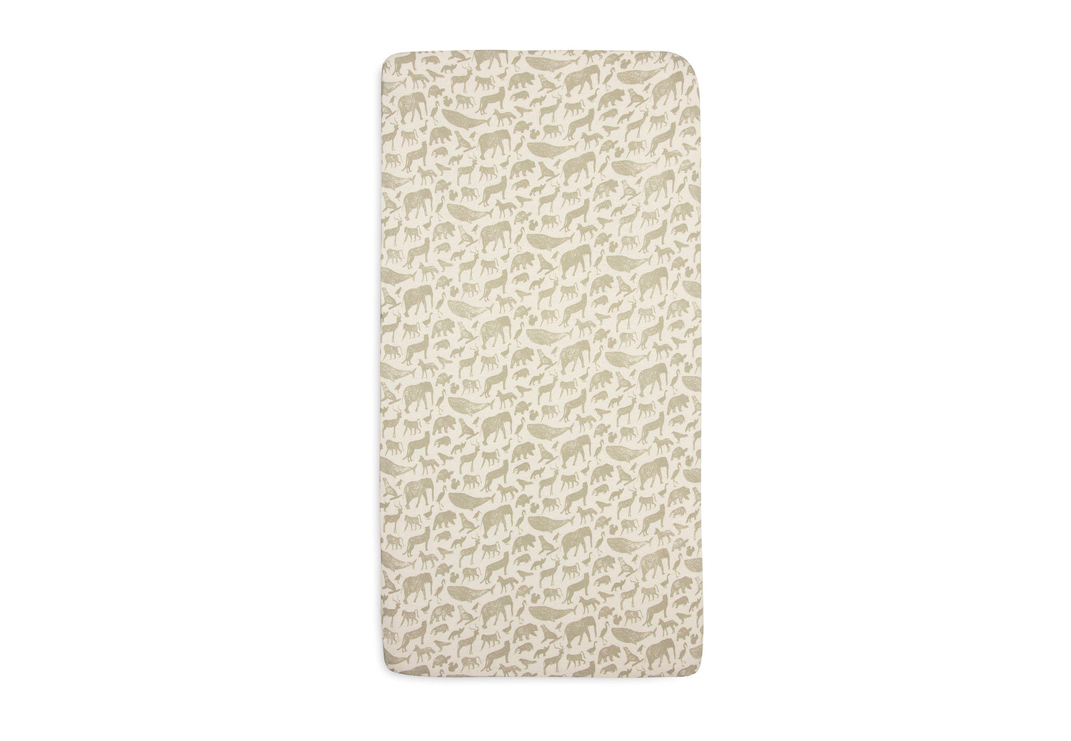 Easily protect the mattress of your baby or toddler with this fun little fitted sheet. The adventurous Animals print will take your mini on an adventure in their dreams. The fitted sheet fits perfectly around the mattress with the elastic bands in each corner. You can perfectly combine the fitted sheet with the blankets from the Grain Knit theme. Available in various sizes, for cot and cradle, in Olive Green and Nougat. Tip: a fitted sheet of cot size is also perfect for a changing mat or a travel cot.