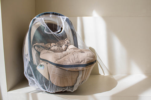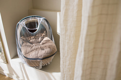 Handy mosquito net for a car seat from 0-9 months. Suitable for any standard car seat and made of 100% polyester.
