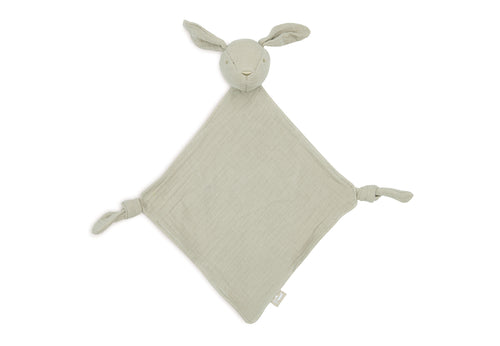 This cute pacifier cloth, in the shape of a cute bunny, is made of extra soft wrinkled muslin. The cloth is not only a cuddly friend for your baby, but also a practical accessory to keep the pacifier close by. Let your little one cuddle this soft bunny for comfort, always close. Shop this adorable pacifier cloth in olive green, moonstone and wild rose.