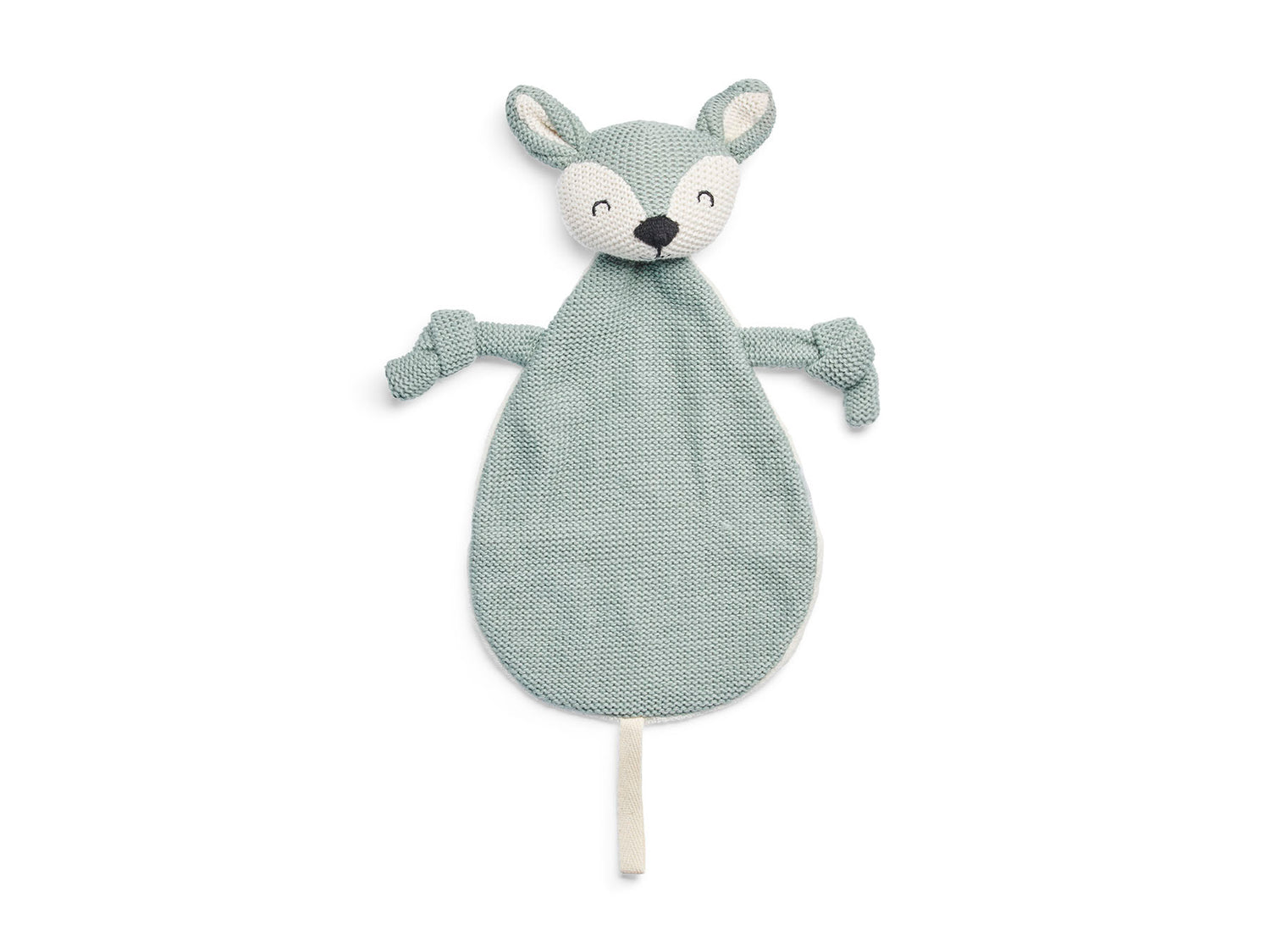 Nice cuddle cloth with a deer. The knitted cuddle cloth is available in the colours green and pink. The soft cuddle cloth is made of 100% cotton and the back is made of terry. The cuddle cloth is 20 cm in size.