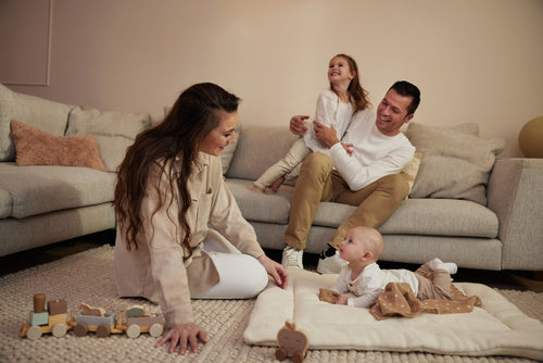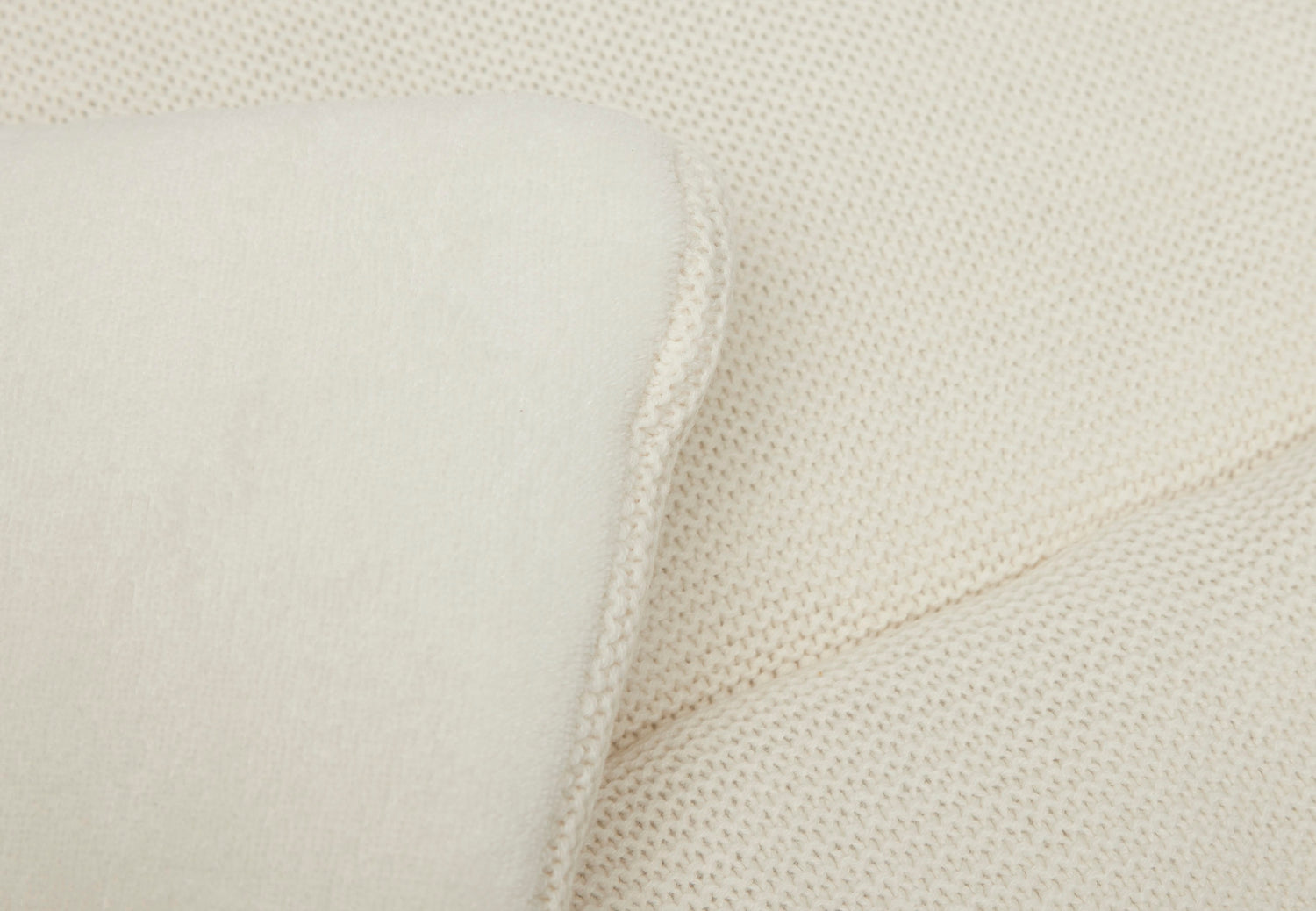 This comfy play mat provides a soft and cozy spot for your little one. The top is made of a beautiful knitted fabric, and the bottom is soft velvet. Perfect for the playpen or as a play mat on the floor.
