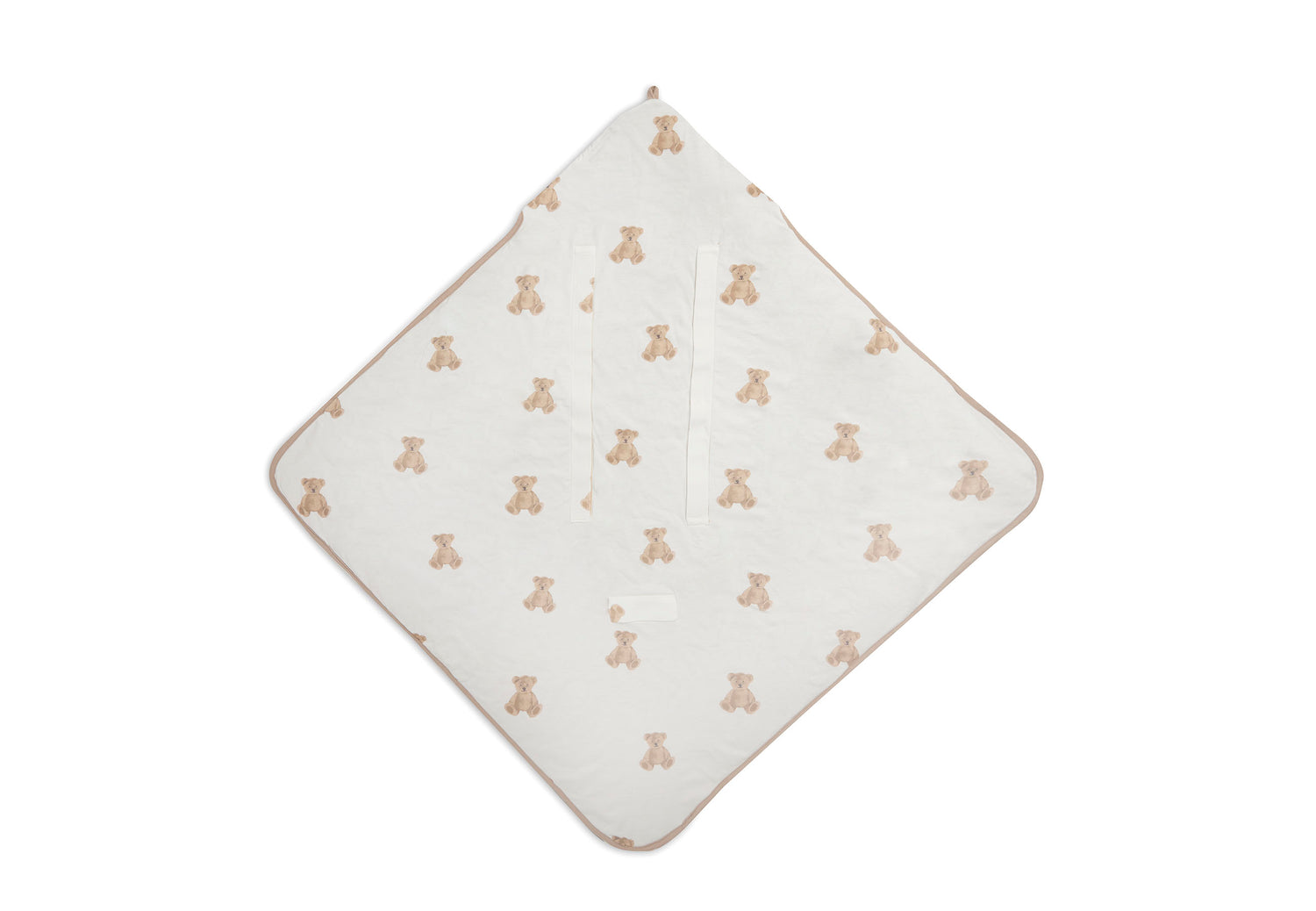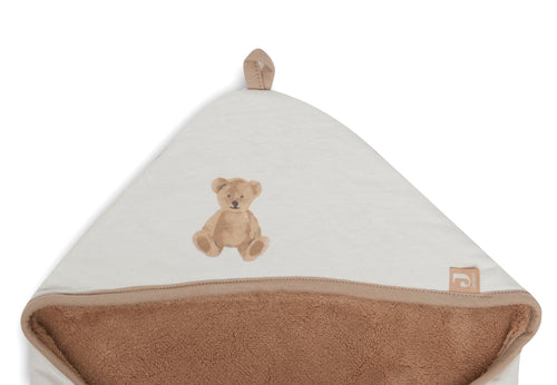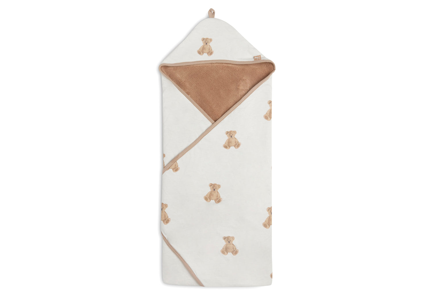 Wrap blanket with guaranteed mega cuteness factor. It has fluffy fur-look fabric on the outside, and it's super comfortably soft on the inside. Wrap your baby up and close the blanket with the practical velcro strips. Put the little hat on, with adorable little ears and a little bear face. Too cute! This wrap blanket can be used from birth. And it's also practical to use in your baby's first car seat. You can put the belts of the car seat through the openings in the blanket, so your baby can stay in their wrap. It's a universal wrap blanket for the Maxi Cosi and every other brand of category 0 cat seat with three or five point seatbelts. Available in various colours.