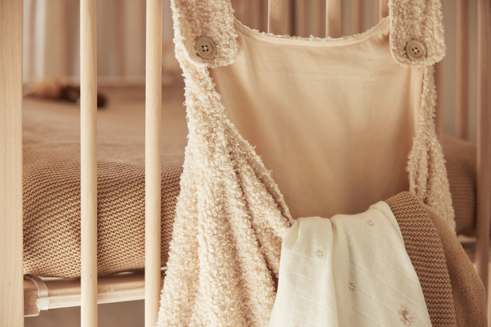 Bouclé, it's soft, cuddly, and super trendy. This fun collection consists of backpacks, storage baskets, playpen mats, and more!
