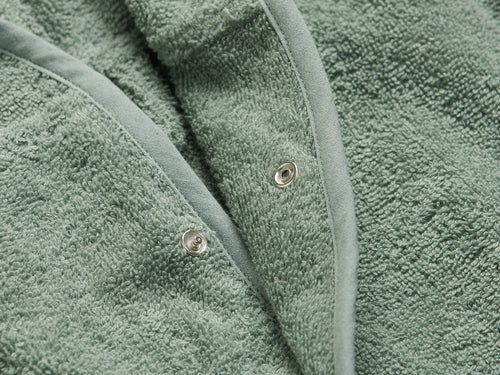 A terry bathrobe is always a practical item to have for your toddler. The bathrobe is perfect for after a bath, a shower or swimming. The soft terry cloth easily absorbs moisture and keeps your little one warm. The cheerful hood with ears will dry the hair. The bathrobe is also practical to take with you on holiday or to a sleepover. The bathrobe can be closed with a press stud, elastic in the back part ensures a perfect fit and the cord is attached to the bathrobe, so that you'll never lose it. The bathrobe is available in the colours: Sea Green, Ash Green, Biscuit, Caramel, Ivory, Jeans Blue, Nougat, Wild Rose, Pale Pink and Biscuit. Make sure to check out our striped bathrobes as well!