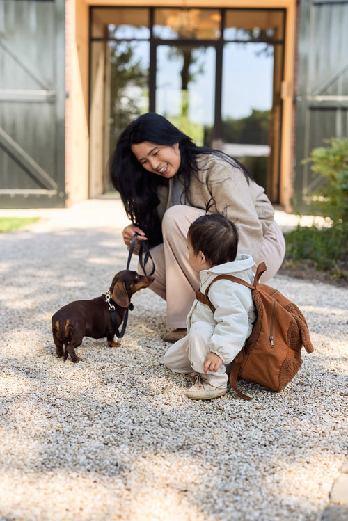 This backpack is perfect for your little one! It features playful ears. The front zipper panel is made of soft teddy fabric, while the sides are reinforced with a polyester mix for durability. Inside, there’s a Velcro pocket for handy storage. The straps have an extra clip for a secure fit. The back is also lined in soft teddy for added coziness. Perfect for little adventurers!
