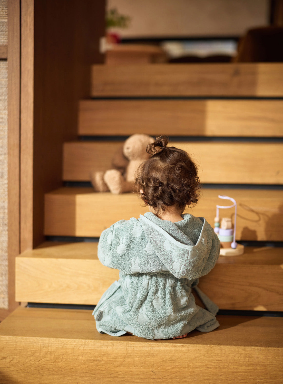 This cute Miffy bathrobe has a subtle print in the beautiful colour Sea Green! A terry bathrobe is always useful for your little one. The bathrobe is perfect to use after bathing, showering or swimming. The soft terry absorbs water easily and keeps your little one nice and warm. The hood easily dries the hair. The bathrobe has a practical snap fastener to keep it closed when wearing, elastic in the back for the perfect fit and the belt is attached to the bathrobe so you can't lose it.
