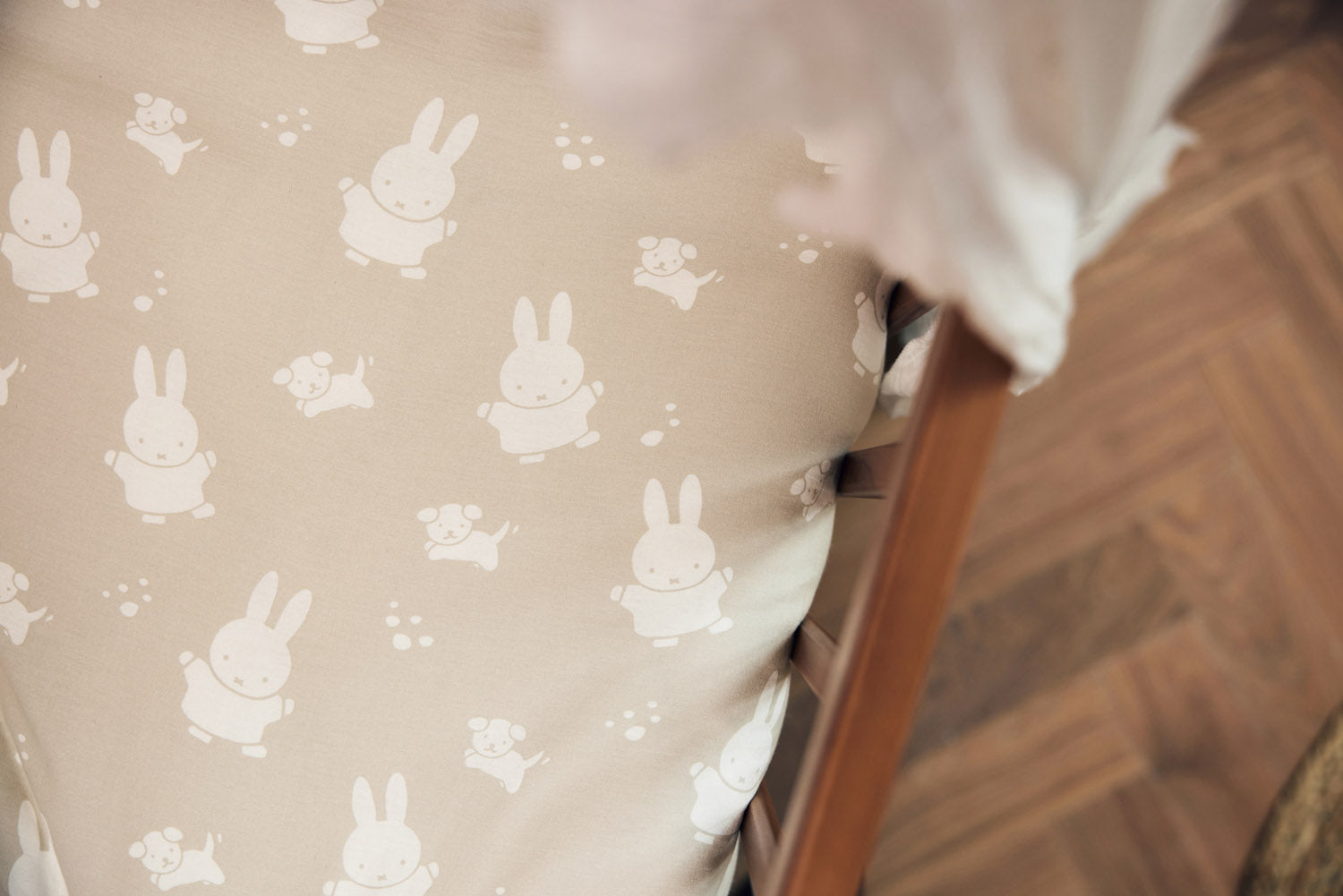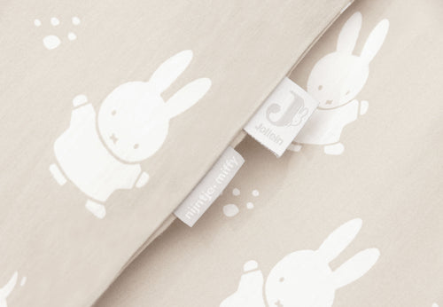 So cute! This duvet cover has an adorable Miffy & Snuffy print. A duvet cover is ideal to protect the duvet, and it's also a true eyecatcher in your kid's room. You can safely start using a duvet when your toddler is 2 years old. A duvet is cosy and warm, and it looks cute. This adorable duvet cover with Miffy print is perfect for the size of duvet for a cot. The duvet cover has a practical opening at the bottom so you can easily put the duvet in, and a pillowcase is included (60x40cm). If your little one is already sleeping with a pillow, you can make it match the duvet cover. Available in Olive Green and Nougat. Did you know that Jollein has all the best basics for your little one's bed? Complete the set with a flannel, fitted sheet and duvet from Jollein. Add the finishing touches with a cute mosquito net. Check out the online shop!
