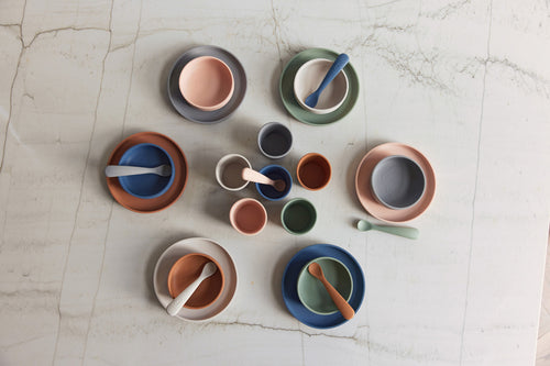 From first bites to the first time eating independently, this silicone children's dinner set helps your little one learn to eat step by step. With a plate, bowl, cup, and spoon, your child has their own spot at the table. So much fun! The tableware is sturdy yet soft to the touch. It’s safe for little hands and mouths, and you don’t have to worry if something falls. This makes learning to eat easier and more enjoyable. After mealtime, everything goes straight into the dishwasher.