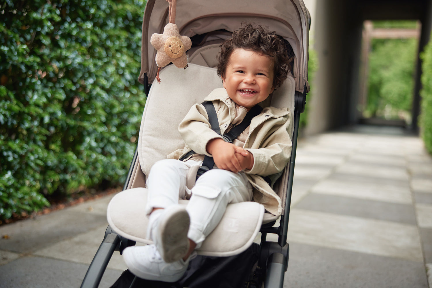 How cute is this pram hanger! Not only does it look super fun, but it also helps stimulate your little one’s motor skills and senses. This adorable pram hanger can easily be attached to a Maxi‑Cosi or stroller using the plastic ring. Inside, there’s a little bell. It also features a colorful tag and two short strings. This sweet pram hanger will keep your little one entertained! Available in the shape of a flower or a duck.