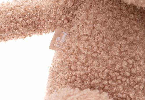 This sweet Teddy Bear made of super cuddly Bouclé will become your mini's good friend. The cuddly toy is easy to grasp by the bear's arms or legs. Your child is sure to find comfort with this stuffed toy and tell this sweet Teddy Bear all their childhood secrets. The Teddy Bear therefore firmly sits in the listening position and does not fall over. This also makes it very suitable as a pretty accessory on the shelf or dresser in the nursery. This sweet bear is available in Olive Green and Wild Rose colours!