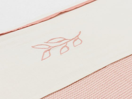 This super cute sheet, ensures that making the cot is even more enjoyable. You fold the sheet such, that the romantic flower is well visible. You can combine the colour with exactly the same colour blanket from the Spring Knit collection or you can choose a different combination of colours.