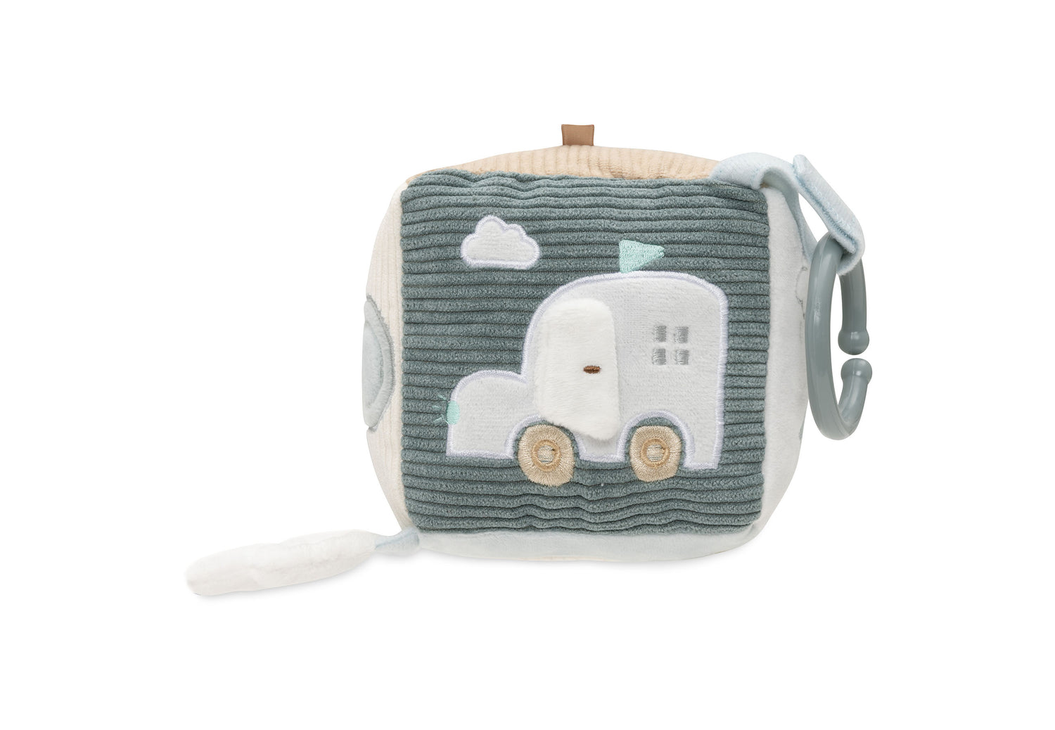 This adventurous activity cube in the ‘On The Go’ theme is perfect for curious little ones! In the lovely colours Sea Green and Biscuit, this cube offers a world of discoveries. You will find an adorable key with a crunching sound, a gas pump print and a traffic light with a mirror for your little one to marvel at. In addition, there are many more fun elements to play with! This activity cube stimulates the senses and provides endless playtime fun!