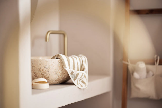 • Bath cape 75x75cm Stripe Terry - Olive Green - GOTS