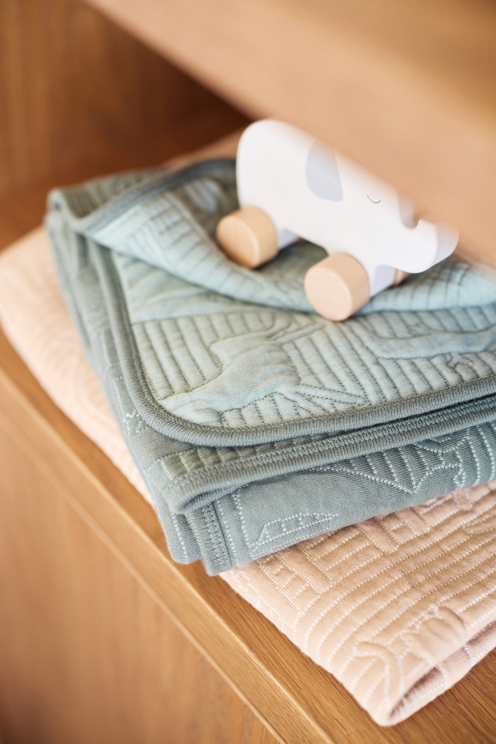 This blanket is a real eye-catcher in the nursery! With the beautiful colours Biscuit/Oatmeal or Ash Green/Laurel you can wear this blanket on both sides and this blanket is therefore completely reversible. The fabric is 100% cotton and the filling is polyester. Introduce your child to all the animals on this cosy print and combine this blanket with the other items from the Jungle Jambo collection! This blanket has a TOG value of 2.