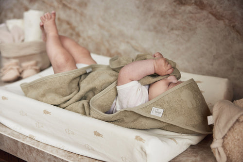 How cute is this changing mat cover with Miffy print? An adorable jersey cover that will fit around the Jollein changing mat perfectly, the most practical basic of your baby equipment. The fabric is soft and stretchy. Thanks to the elastic in the edges, the cover will stay in place around the mat. And thanks to the print, it looks utterly adorable. Available in Olive Green and Nougat.