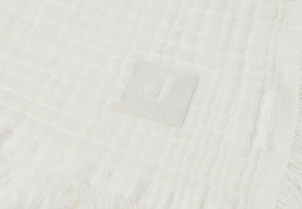 Les couvertures douces du thème Muslin-Fringe sont un véritable must-have pour chaque (future) maman. Elles ont été conçues de manière à pouvoir être utilisées parfaitement non seulement comme couverture, mais aussi comme tissu de puériculture. Les couvertures sont en coton 100 % bio. Dans le thème, tu trouveras les couleurs neutres Ivory, Storm Grey et Biscuit et les couvertures sont disponibles dans les dimensions 75x100 cm et 120x120 cm