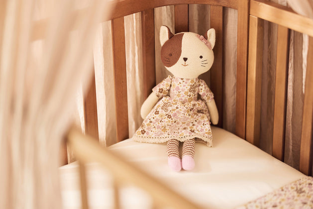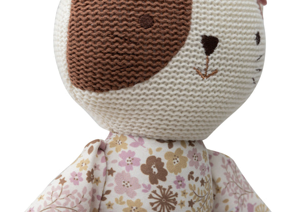 Cette peluche trop mignonne est prête pour l’aventure et les câlins ! Son corps en tricot est tout doux, parfait pour les câlins, et elle tient bien assise pour décorer joliment la chambre de bébé. Un compagnon idéal pour votre petit bout de chou !