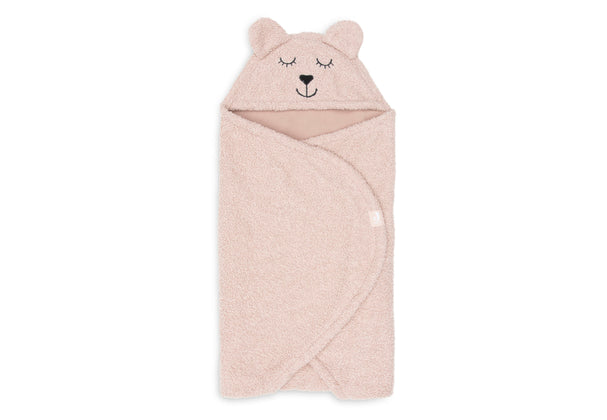 Couverture enveloppante d'une douceur exceptionnelle garantie. Le tissu d'aspect fourrure duveteuse à l'extérieur est merveilleusement confortable et doux à l'intérieur. Enveloppez votre bébé dans cette couverture et fermez-la à l'aide des bandes Velcro pratiques. Ajoutez le petit bonnet et voyez ces mignonnes petites oreilles et le visage de nounours sur le bonnet. Vraiment trop mignon ! Cette couverture peut être utilisée dès la naissance. Elle est également très pratique pour le premier siège auto de bébé. Les ceintures de sécurité se passent à travers les ouvertures de la couverture pour que votre bébé reste bien emmitouflé. Il s'agit d'une couverture universelle pour siège auto Maxi Cosi et toute autre marque de catégorie 0 avec harnais à trois ou cinq points. Disponible en plusieurs couleurs.