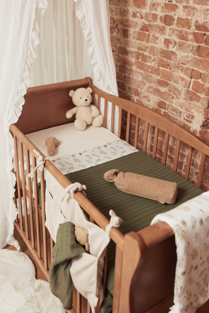 You will find lovely blankets, hot water bottle bags, changing mat covers, and cot bumpers. The items in the Pure Knit collection are made of 100% organic cotton (GOTS certified). The Pure Knit collection is available in the colours: Natural, Biscuit and Leaf Green. These items from the Pure Knit collection can be easily matched with all Jollein collections. Will you make the combination with the items from the Wildflowers, Stargaze or Teddy Bear collection?