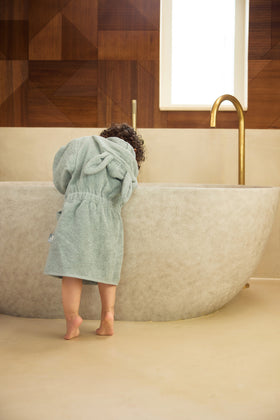 Un peignoir en tissu éponge est toujours pratique pour ton tout-petit. Le peignoir est parfait pour être utilisé après un bain, une douche ou une baignade. Le tissu éponge doux absorbe facilement l’eau et garde ton enfant au chaud. La joyeuse capuche avec oreilles sèche facilement les cheveux. Le peignoir est également pratique à emporter en vacances ou lors d’une soirée pyjama. Le peignoir est doté d’un bouton pression pratique pour le maintenir fermé lorsqu’il est porté, d’un élastique dans le dos pour un ajustement parfait et la ceinture est attachée au peignoir pour que tu ne puisses pas la perdre. Le peignoir est disponible dans les couleurs : Sea Green, Ash Green, Biscuit, Caramel, Ivory, Jeans Blue, Nougat, Wild Rose et Pale Pink. Découvre également nos peignoirs rayés !