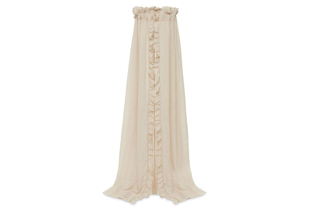 Le ciel mesure 155 cm de long. La flèche pour ciel de lit assortie mesure 150 cm de haut. La flèche pour ciel n’est pas incluse avec le ciel de lit.
