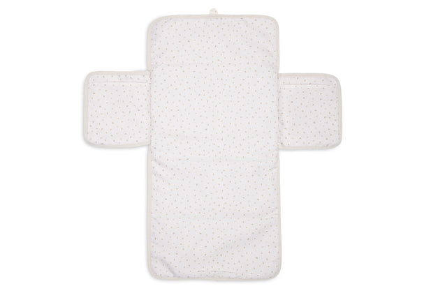 Ce matelas à langer est en tissu côtelé doux. L’intérieur amovible en polyester est orné d’un adorable imprimé feuillage. Il comprend des compartiments pratiques pour les couches et autres essentiels, et se ferme facilement avec un petit nœud. Idéal pour les balades !