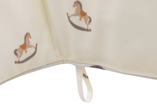 Notre gamme s'enrichit de coussins pour sièges hautes qui s'adaptent parfaitement aux sièges hautes IKEA. Les coussins Deez n'ont pas d'assise en bas mais épousent le dos de votre enfant comme une couche supplémentaire dans la siège. Les accoudoirs surélevés maintiennent votre enfant en position assise, et les boucles de ce coussin le maintiennent parfaitement en place. La matière est déperlante et s'essuie facilement avec un chiffon humide. L'imprimé Nostalgic Ride, avec ses jolis chevaux à bascule et sa couleur avoine, est vraiment adorable.