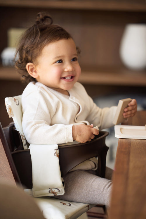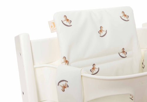 C'est chouette de savoir que votre enfant peut désormais s'asseoir à table avec vous! Si vous voulez que votre enfant soit confortablement installé à table avec vous, optez pour ce coussin de siège amovible. Le coussin de siège évolutive s'adapte parfaitement aux sièges hautes évolutives et présente un superbe imprimé intégral Nostalgic Ride avec un adorable cheval à bascule!