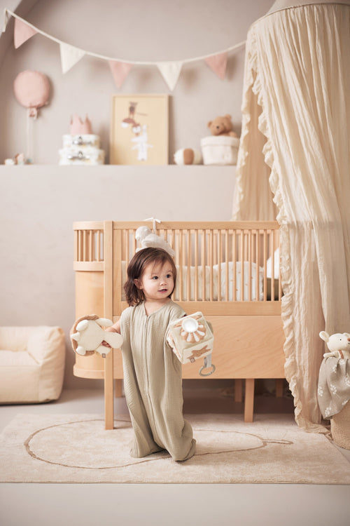 Plongez votre enfant dans le monde magique de l'océan, avec des personnages tels qu'une étoile de mer, une baleine, un hippocampe et une perle scintillante. Tous ces éléments amusants sont conçus dans des couleurs tendance telles que le vert olive, le nougat et le biscuit, ce qui rend le cube non seulement stimulant mais aussi élégant. Laissez votre bébé passer des heures de plaisir et de découverte avec notre cube d'activités Deep Sea.
