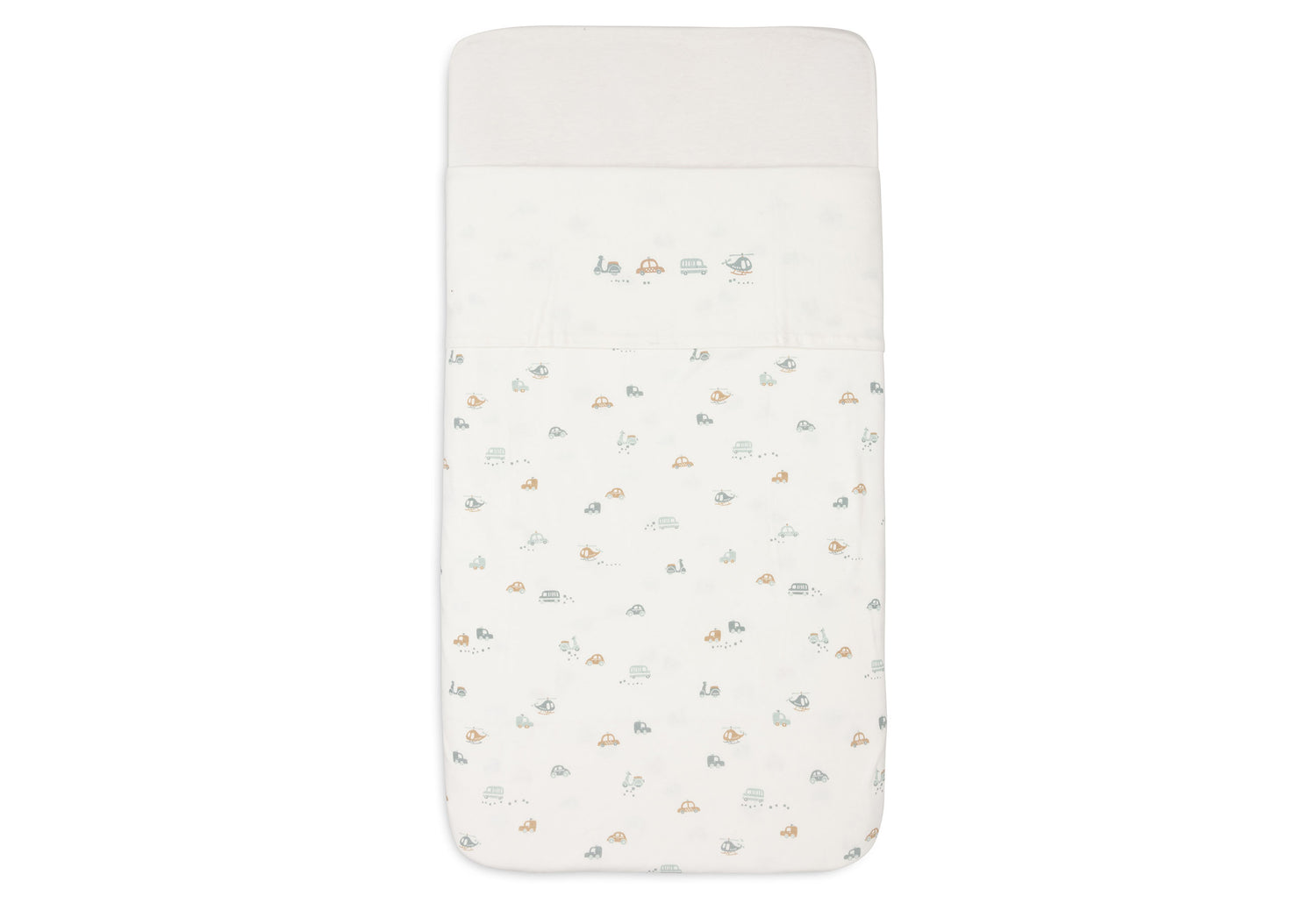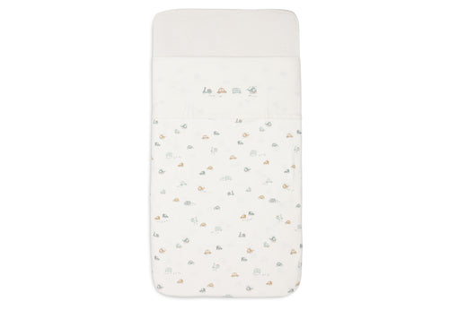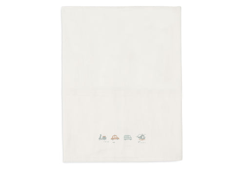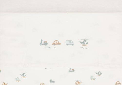 Laissez votre enfant rêver sous ce magnifique drap du thème On The Go ! Ce drap de couleur Ivory présente un imprimé ludique avec deux voitures, un scooter et un hélicoptère sur le bord plié. Ce petit drap se combine parfaitement avec les couvertures de la collection Cosy Knit. Il existe en différentes tailles pour le berceau et le lit de bébé.