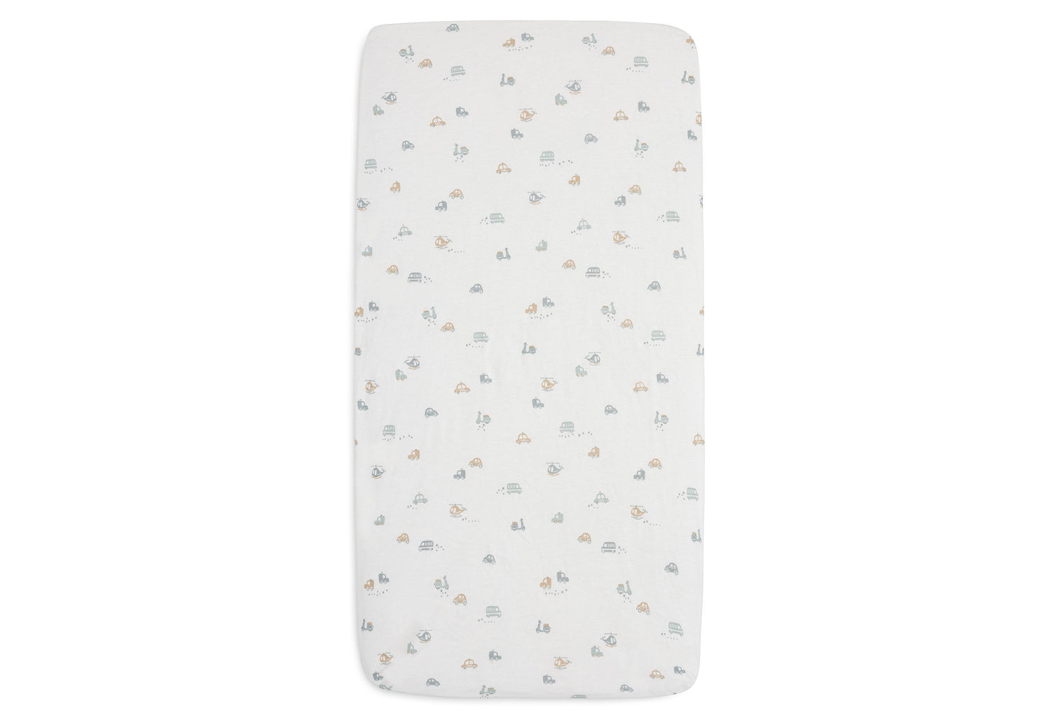 Gardez le matelas de votre enfant sûr et confortable avec cet adorable drap-housse. Ce drap-housse est orné d'un joli imprimé représentant des voitures, des scooters et des hélicoptères sur un fond Ivory. Le drap-housse s'ajuste sans effort autour du matelas grâce aux élastiques situés dans chaque coin. Associez ce drap-housse à nos couvertures de notre nouvelle collection, comme Cosy Knit en Ivory ou Check Knit en Biscuit.