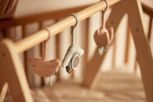 Ces mignons jouets pour arche d'éveil offre à votre enfant du divertissement à l'infini ! Avec un joli nichoir, une joyeuse fleur et un adorable petit oiseau, il y a toujours quelque chose d'amusant à découvrir sous le l'arche d'éveil. La fermeture velcro pratique permet de les attacher facilement à l'arche d'éveil, et le petit oiseau est muni de jolies cordes pour jouer avec. Chaque jouet émet un son différent, ce qui est parfait pour les petits explorateurs curieux !