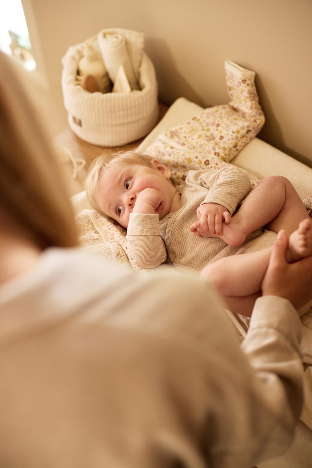 Ranger n’a jamais été aussi simple avec ce joli panier de commode. Élégant et spacieux – on y range bien plus qu’on ne le pense ! Le tissu côtelé Cloudy se marie parfaitement avec votre table à langer. Associez-le à une housse assortie et votre coin change sera 100 % tendance. Vous optez pour Milky Coffee ou Oatmeal ?