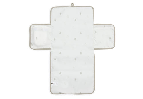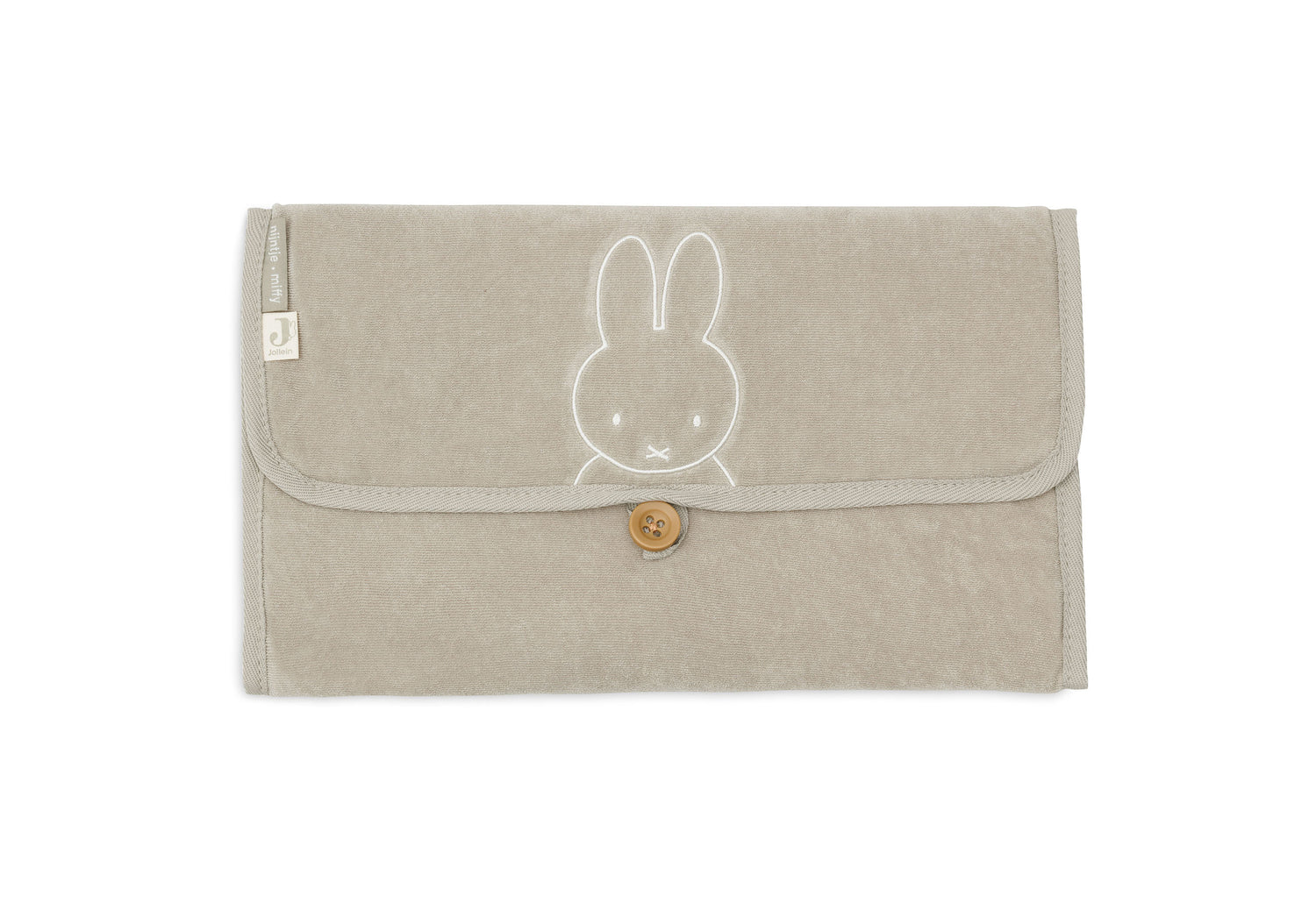 Gardez votre bébé installé confortablement et changez-le avec style, où que vous soyez, grâce à notre tapis à langer nomade Miffy. Achetez-le en vert olive et en nougat.