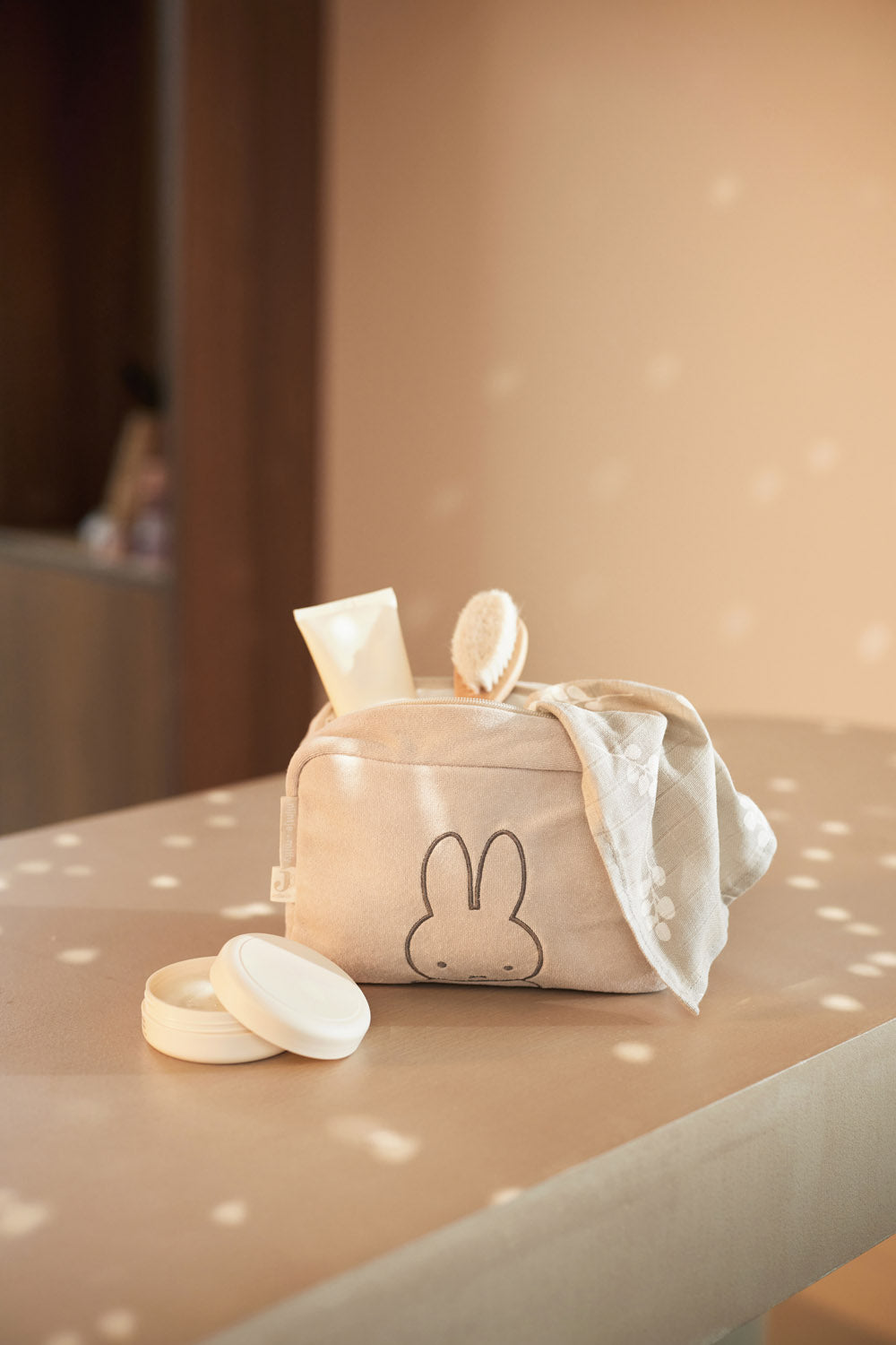 Oh là là, trop mignon ! Découvrez notre pochette Miffy très tendance, l'accessoire parfait pour les mamans et les bébés ! Cette pochette polyvalente est indispensable à votre sac de maman, où vous pourrez facilement organiser tous les essentiels de votre bébé. Mais ce n'est pas tout - cette pochette est également idéale pour les mamans, parfaite comme trousse de maquillage, pochette ou sac pratique pour les petits objets essentiels. La pochette en tissu éponge est ornée d'un irrésistible visage de Miffy sur le devant. Disponible dans les couleurs tendance nougat et vert olive, cette pochette s'adapte à tous les styles. Pratique, élégante et multifonctionnelle, cette pochette changera la donne pour toutes les mamans. Ajoutez-la à votre collection dès aujourd'hui !