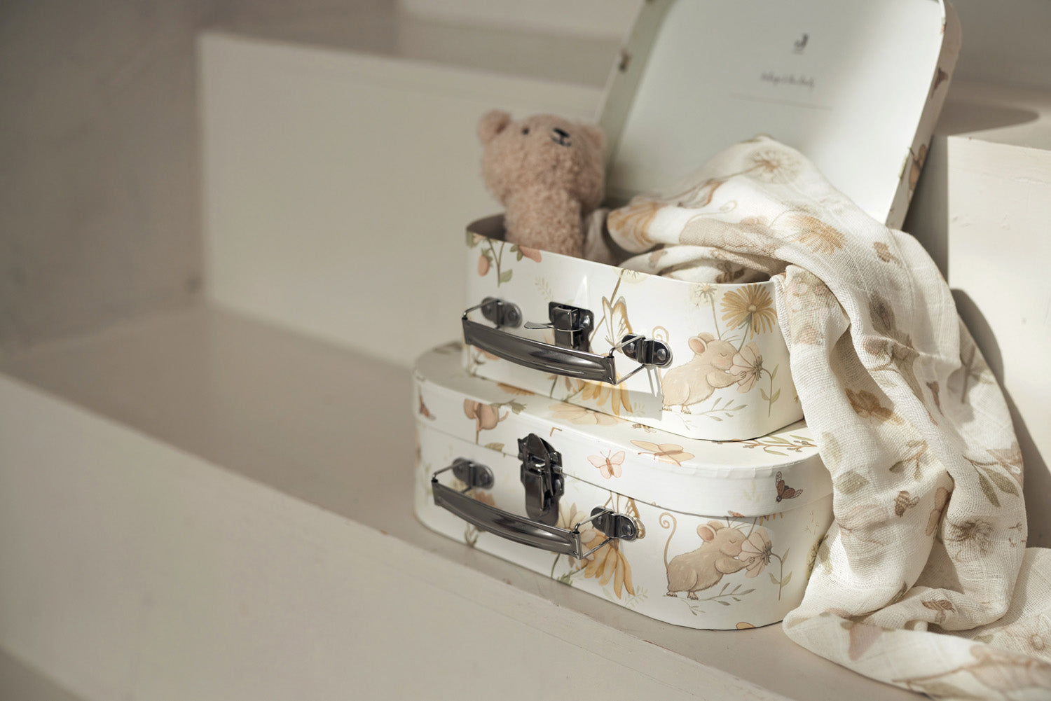 Rien de tel que d'observer les jeux d'imitation, ils sont tellement amusants ! C'est lors de ces jeux que votre enfant élabore des scénarios complets et stimule son imagination. Cette mallette de jeu au design élégant y aura tout à fait sa place. La mallette est ornée d'une belle impression du thème Dreamy Mouse et à l'intérieur, vous pouvez écrire le nom de votre enfant. Votre bébé est encore trop petit ? Pas de problème ! La mallette attire aussi véritablement les regards dans la chambre de bébé. Et pourquoi ne pas offrir cette mallette en guise de cadeau de naissance ?!